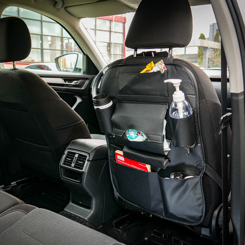 Un accesoriu multifunctional, util pentru organizarea diferitelor obiecte pe timpul calatoriei si protejarea spatarelor scaunelor din fata. Se monteaza cu ajutorul unei benzi elastice, cu sistem de fixare inclus.