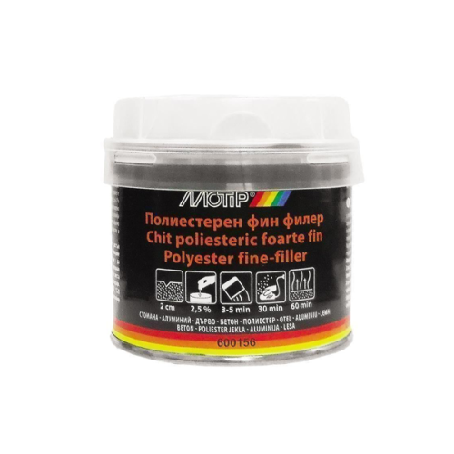 Motip Chit Poliesteric Fin 250g (cod M600156) este un produs specializat în reparații fine și finisaje care utilizează rășini poliesterice. Acest chit este ideal pentru corectarea imperfecțiunilor mici și pentru obținerea unei suprafețe netede și uniforme pe piesele din plastic, lemn sau metal. Este ușor de aplicat și de prelucrat manual, oferind rezultate estetice de înaltă calitate în diverse aplicații.